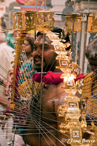 One of the most fascinating aspects of Thaipusam is that often no blood can be seen from the piercings that are made onto the kavadi-bearer’s skin.